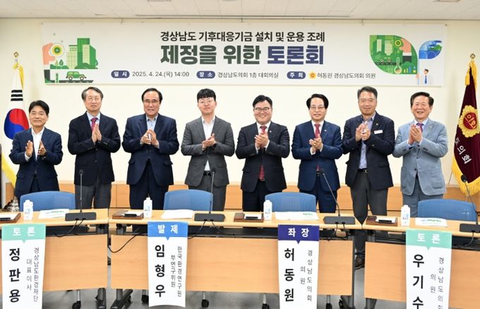 [경남도민뉴스=구인애 기자] 경상남도의회 허동원(국민의힘, 고성2) 의원은 24일 도의회 대회의실에서 '경상남도 기후대응기금 설치 및 운용 조례' 제정을 위한 토론회를 개최했다.