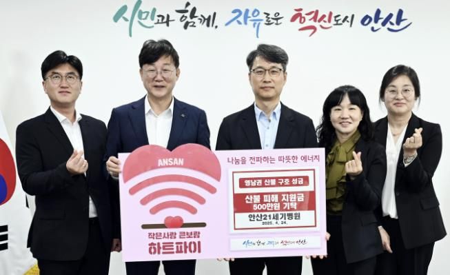 [경남도민뉴스=김동규 기자] 안산시는 지난 24일 안산21세기병원으로부터 영남 지역 산불 피해 복구를 위한 성금 500만 원을 기탁받았다고 25일 밝혔다.
