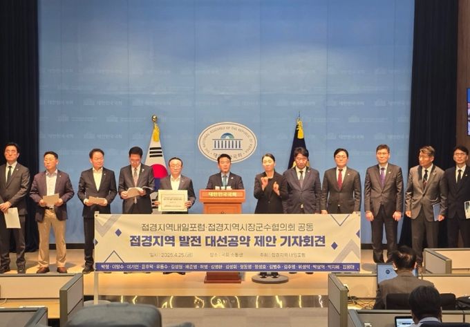 국회의원 연구단체인 ‘접경지역 내일 포럼’과 ‘접경지역 시장·군수 협의회’ 공동 주최로 열린 이번 기자회견에는 더불어민주당과 국민의힘 소속 국회의원, 접경지역 기초 지자체 단체장들이 참석해 접경지역 현안 해결과 대선 공약에 반영할 것을 촉구했다.