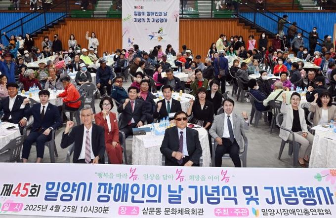 [경남도민뉴스=나희준 기자] 밀양시는 25일 밀양문화체육회관에서 밀양시장애인총연합회(회장 황순옥) 주관의 제45회 장애인의 날 기념행사를 개최했다고 밝혔다.