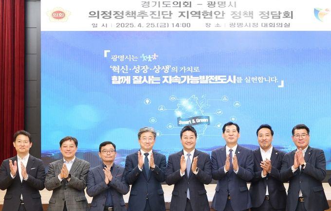 [경남도민뉴스=김동규 기자] 경기도의회 김진경(더민주·시흥3) 의장과 의정정책추진단은 25일 광명시청에서 ‘지역현안 정책 정담회’를 갖고 광명시의 주요 정책 현안과 경기도의회 차원의 지원방안을 논의했다.
