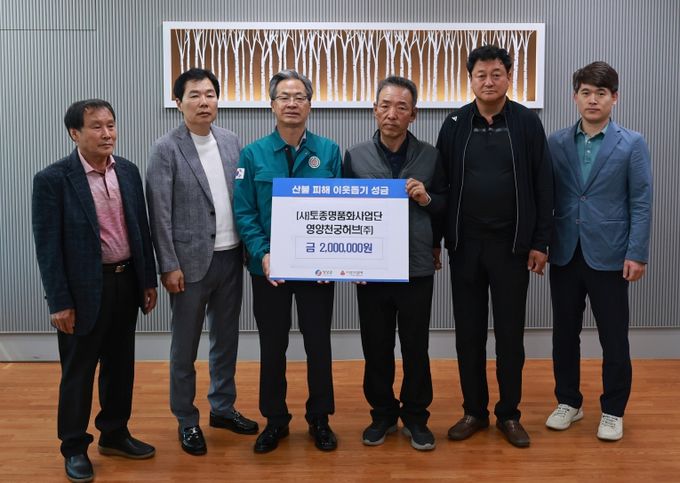 (사)토종명품화사업단은 관내 천궁재배 농업인(회원)들과 뜻을 모아 자회사 ㈜영양천궁허브 가공공장에서 지난 해 천궁 가공 후 남은 부산물을 판매한 수익금 200만원을 산불 피해로 어려운 이웃을 위한 성금으로 전달하고 “새까맣게 타버린 산과 마을을 생각하면 마음이 너무 아프다며, 작은 마음이 더해져 이재민들의 빠른 일상회복을 바란다”고 말했다.