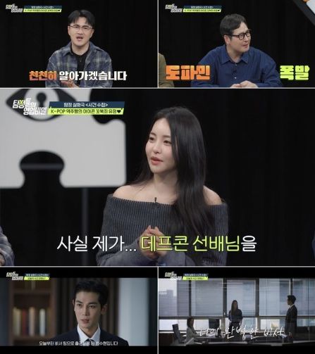 그러나 '탐정들의 영업비밀' 스튜디오를 찾은 유정은 "사실 데프콘 선배님을 너무 보고 싶었다"라며 데프콘을 향한 관심을 드러낸다.