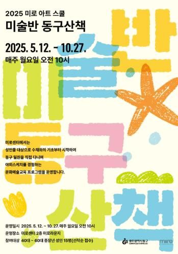 [경남도민뉴스=최현인 기자] 광주 동구는 오는 5월부터 관내 아동과 성인을 대상으로 하는 장르 특화(수채화·한국화) 문화예술교육 프로그램 ‘2025 미로 아트스쿨’을 운영한다고 밝혔다.