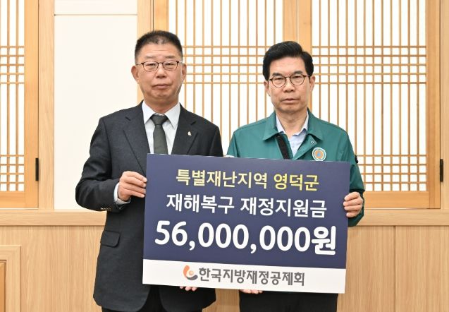 [경남도민뉴스=장강동 기자] 행정안전부 산하 지방재정 전문기관인 한국지방재정공제회는 지난 24일 기록적인 산불로 큰 피해가 발생한 영덕군을 찾아 특별재난지역 재해복구 재정지원금 5,600만 원을 전달했다.