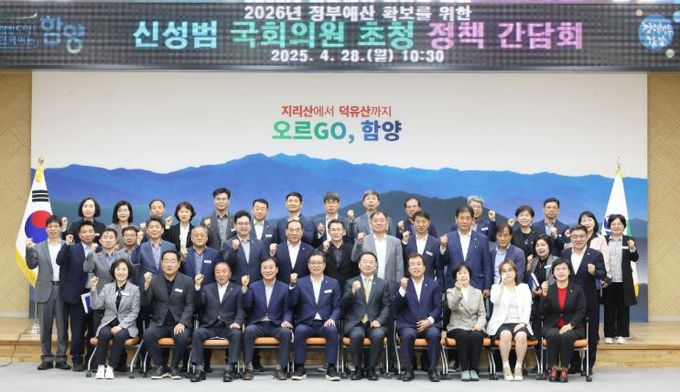 [경남도민뉴스=장광동 기자] 함양군이 28일 오전 10시 30분 군청 대회의실에서 신성범 국회의원을 초청해 정부예산 확보를 위한 정책 간담회를 개최했다.
