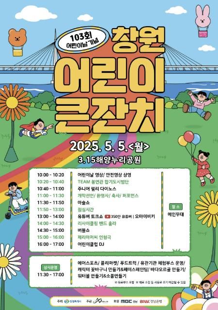[경남도민뉴스=박민호 기자] 창원특례시는 오는 5월 5일 ‘제103회 어린이날’을 맞아 3.15해양누리공원에서 ‘창원 어린이 큰잔치’를 개최한다고 밝혔다.
