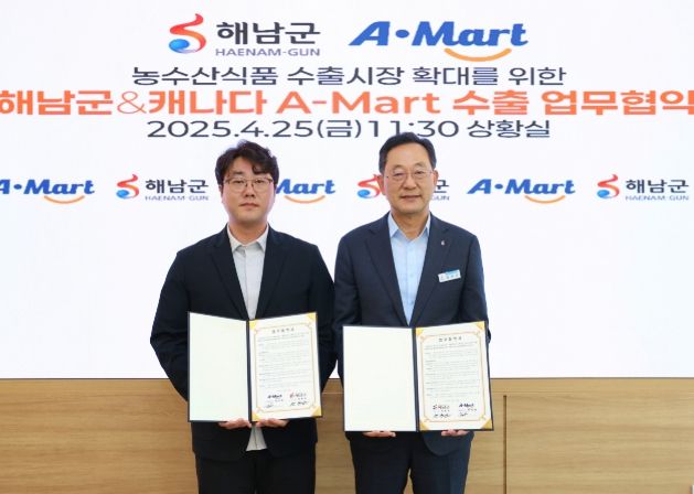에이마트(대표 최병화)는 캐나다 캘거리에 3개 매장을 보유한 아시아 식품판매 전문마트로 해남군은 협약을 계기로 해남의 우수 농수산물을 캐나다로 수출할 초석을 마련했다.