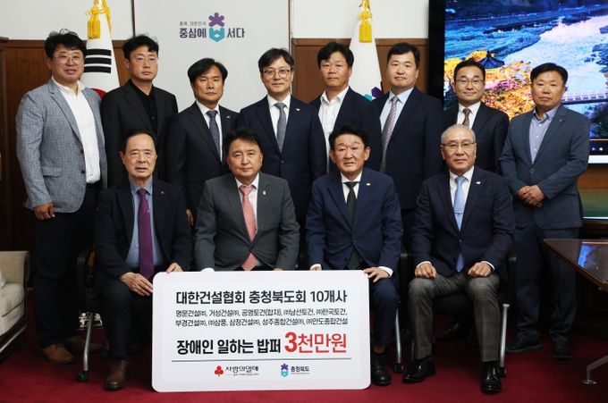 김영환 지사는 “지역 경제를 이끄는 종합건설사들이 뜻을 모아 따뜻한 나눔을 실천해 주셔서 감사드린다”며, “앞으로도 사회참여 취약계층의 일자리 창출과 지역 경제 활성화를 위한 다양한 정책을 지속적으로 추진하겠다”고 밝혔다.