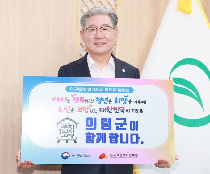 [경남도민뉴스=이상민 기자] 오태완 의령군수가 보건복지부와 한국보건복지인재원이 주관하는 ‘인구문제 인식개선 릴레이 캠페인’에 동참했다고 29일 밝혔다.