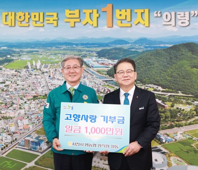[경남도민뉴스=이상민 기자] 의령군은 사천시 NH농협 지역 임직원 3명이 지난 25일 의령군청을 방문해 고향사랑기부금 1,000만 원을 전달했다고 밝혔다.