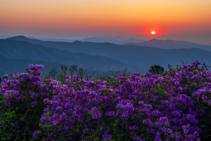 광양시가 해발 532m 백운산 국사봉의 진분홍 철쭉이 절정을 이루며 일출 명소로 인기를 끌고 있다고 30일 밝혔다.
