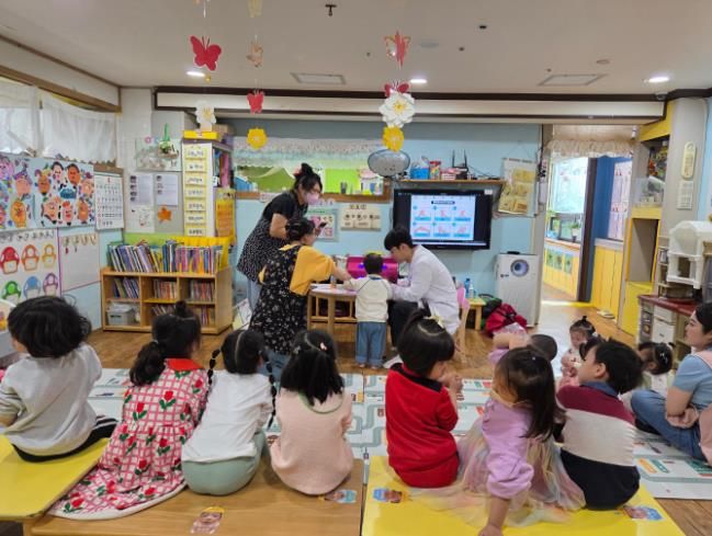 군은 어린이에게 올바른 손씻기의 중요성을 알리기 위해 흥미를 가지고 직접 체험할 수 있는 ‘손씻기 교육용 뷰박스’을 활용해 교육을 진행했다.