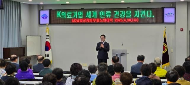 남해군은 2025년 고향사랑 방문의 해를 맞아 ㈜누가의료기 조승현 회장을 시작으로 많은 향우들이 군내 13개 노인대학에서 특강을 할 수 있도록 연결시켜 주고 있다.