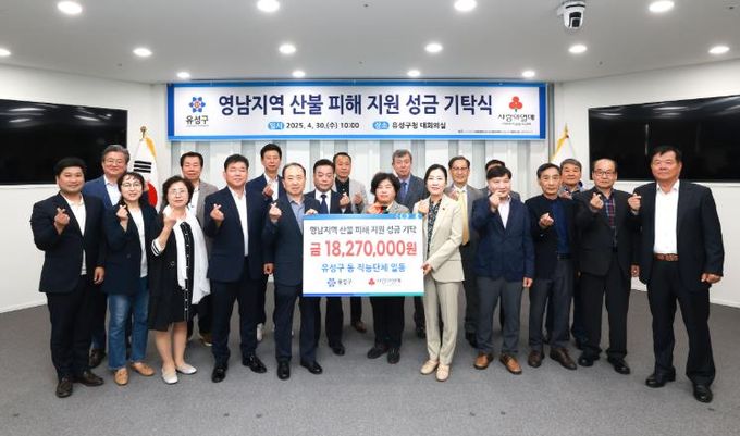 [경남도민뉴스=도문호 기자] 대전 유성구는 관내 직능단체가 영남 지역에 발생한 대형 산불 피해 복구를 위해 자발적으로 모금한 성금 1,827만 원을 기탁했다고 1일 밝혔다.