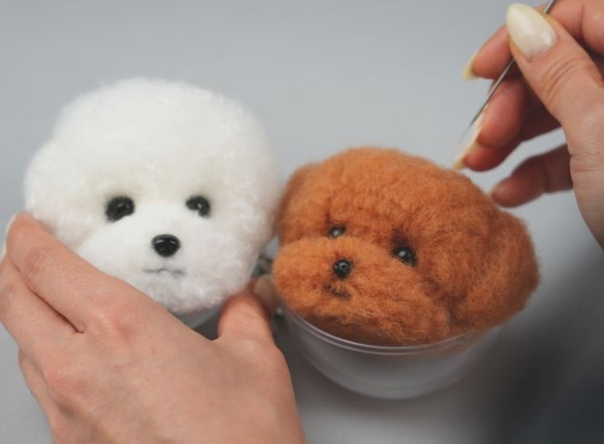 모직 소재의 펠트 구(求)에 바늘을 여러 차례 찔러 섬유를 엉기게 만드는 축융(縮絨) 기법은 단순하지만 세밀한 작업이 가능하며, 만11세 이상 누구나 반려견을 닮은 키링을 만들어볼 수 있다.