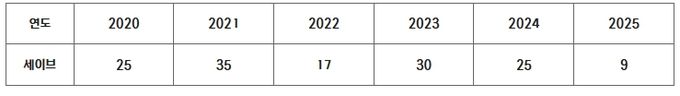 [경남도민뉴스=백형찬 기자] 롯데 김원중이 6시즌 연속 시즌 10세이브 달성을 앞두고 있다.