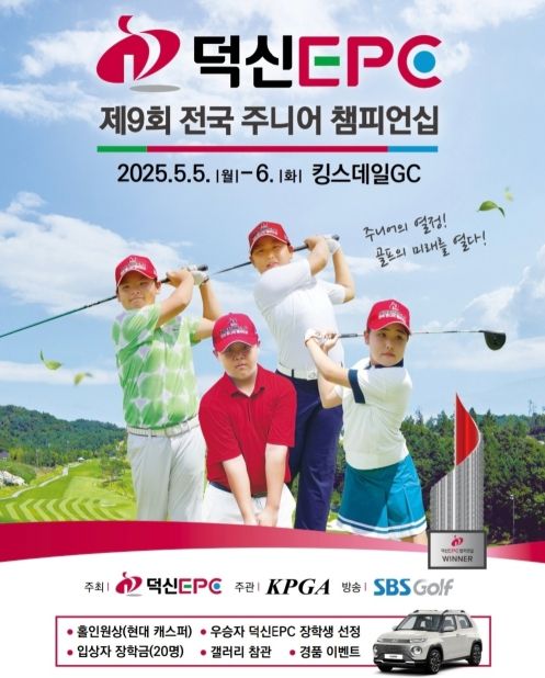 [경남도민뉴스=백형찬 기자] 덕신EPC(회장 김명환)가 주최하고 (사)한국프로골프협회(회장 김원섭, KPGA)가 주관하는 ‘제9회 덕신 EPC배 전국 주니어 챔피언십’이 5일부터 6일까지 양일간 충북 충주 소재 킹스데일 골프클럽 레이크, 힐코스에서 펼쳐진다.