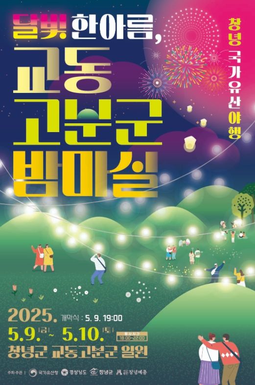 [경남도민뉴스=김병현 기자] 창녕군은 오는 5월 9일부터 10일까지 이틀간 ‘2025 창녕 국가유산 야행’을 개최한다고 밝혔다. 이번 야행은 ‘달빛 한 아름, 교동 고분군 밤마실’을 주제로, 유네스코 세계유산에 등재된 창녕 교동·송현동 고분군과 창녕박물관 일대에서 다채롭게 펼쳐진다.