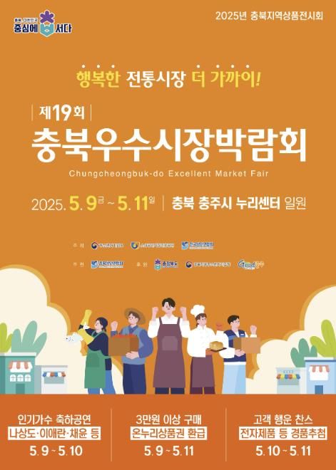 [경남도민뉴스=박만수 기자] 충북 도내 전통시장 우수상품을 한자리에서 만날 수 있는 제19회 충북 우수시장 박람회가 5월 9일부터 11일까지 사흘간 충주시 누리센터 일원에서 열린다.