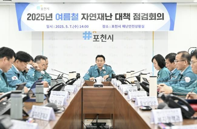 [경남도민뉴스=김동규 기자] 포천시는 지난 7일 시청 재난안전상황실에서 시장, 부시장, 13개 협업부서장 등 24명이 참석한 가운데, 여름철 자연재난 대비 점검회의를 열고 인명피해 우려지역(자연재해위험개선지구) 현장을 점검했다.