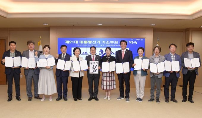 광주광역시는 8일 오후 시청 비즈니스룸에서 ‘제21대 대통령선거 거소투표 참여 약속 행사’를 개최했다.