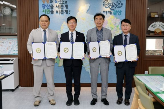 광산구는 8일 구청에서 LH(한국토지주택공사)광주전남지역본부(본부장 유병용), 서광주 새마을금고(이사장 박성구), 송정농협(조합장 차주철)과 ‘따뜻한 주거복지 포인트 사업’ 추진을 위한 업무협약을 체결했다.