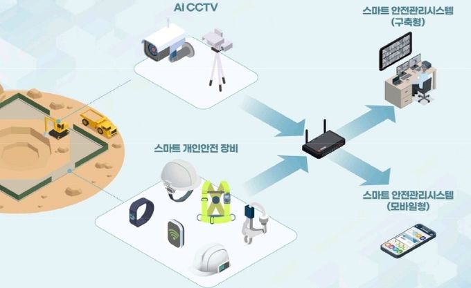 스마트 안전장비는 근로자의 위치와 행동을 실시간 모니터링하고, 추락·가스·화재 등의 위험요소를 즉시 감지해 관리자에게 경고를 전송하는 시스템이다. 또한 국토안전관리원과 무선통신 기반으로 연동돼 통합 안전 모니터링 체계도 구현한다.