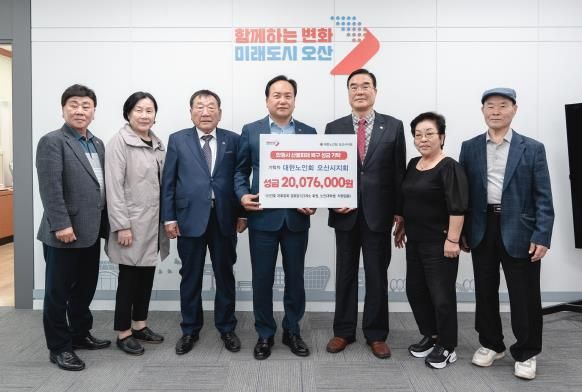 [경남도민뉴스=김동규 기자] (사)대한노인회 오산시지회는 지난 7일, 대형 산불로 큰 피해를 입은 경상북도 안동시의 이재민을 지원하기 위해 성금 20,076,000원을 기탁했다고 밝혔다. 이번 성금은 관내 경로당 회원들이 약 3주간 자발적으로 모금한 것이다.