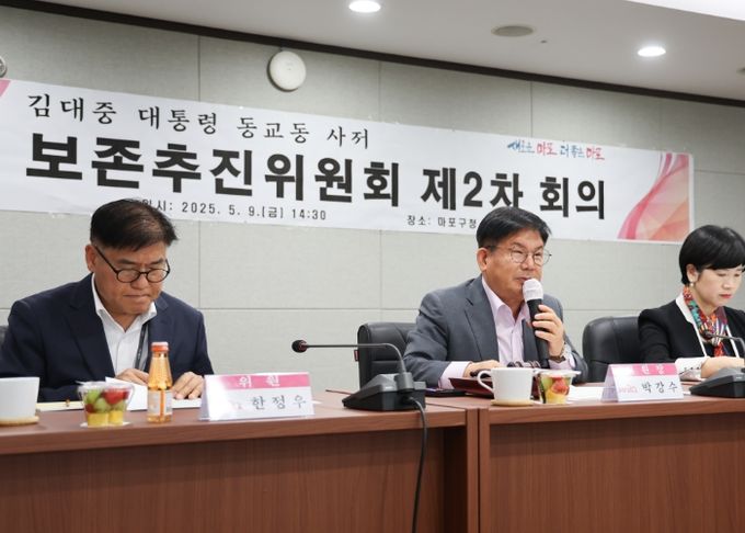 이번 회의는 지난해 12월에 열린 1차 회의에 이어 두 번째로 마련된 자리로, 위원장인 박강수 마포구청장을 비롯해 김대중재단 배기선 사무총장, 유족 대표 김종대 위원 등 보존추진위원들이 참석해 사저의 보존 방향에 대해 심도 있는 의견을 나눴다.