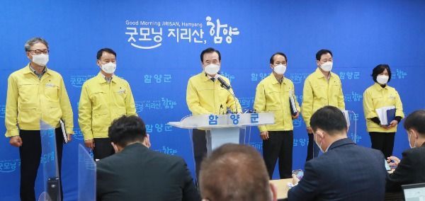 [경남도민뉴스] 서춘수 함양군수가 지역내 코로나 확산에 따른 긴급 기자회견을 열고 적극적인 방역 동참을 호소하는 등 군민 건강 챙기기에 나섰다.