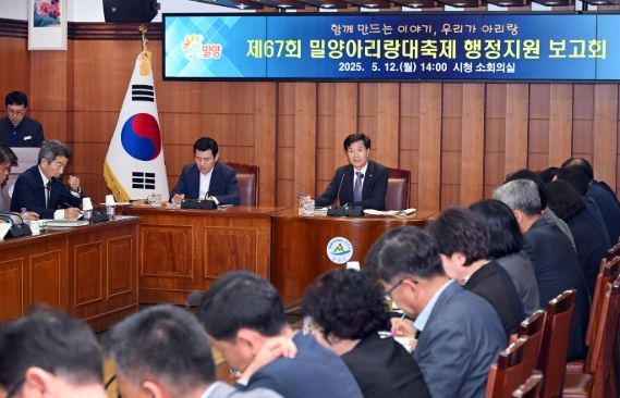[경남도민뉴스=나희준 기자] 밀양시는 12일 시청 소회의실에서 제67회 밀양아리랑대축제 행정지원 보고회를 개최해 최종 준비 상황을 점검했다고 밝혔다.