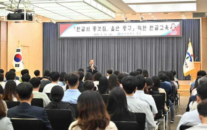 [경남도민뉴스=최재경 기자] 울산 중구가 국가기념일로 지정된 세종대왕 나신 날(5월 15일)을 맞아 5월 13일 오후 4시 중구청 대회의실에서 한글 문화교육을 진행했다.