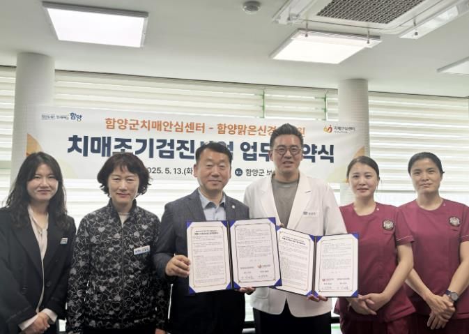 [경남도민뉴스=장광동 기자] 함양군치매안심센터는 13일 ‘함양맑은신경과의원’과 치매조기검진사업 추진을 위한 업무협약을 체결했다고 밝혔다.