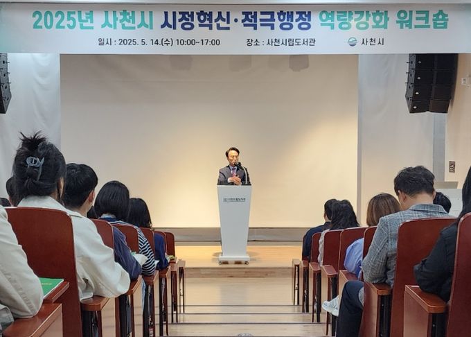 [경남도민뉴스=변정형 기자] 사천시는 14일 사천시립도서관 대강당에서 100여 명의 직원이 참석한 가운데 ‘시정혁신·적극행정 역량강화 워크숍’을 개최했다.