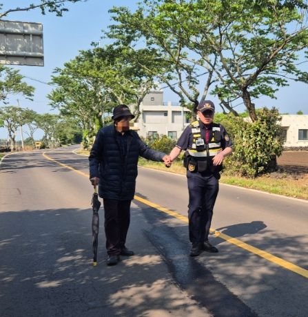 [경남도민뉴스=하형수 기자] 제주특별자치도 자치경찰단(단장 오충익) 동부행복치안센터는 12일 제주시 구좌읍 비자림 인근 도로 한복판을 위태롭게 걷던 치매 어르신을 신속히 구조해 가족에게 안전히 인계했다고 밝혔다.