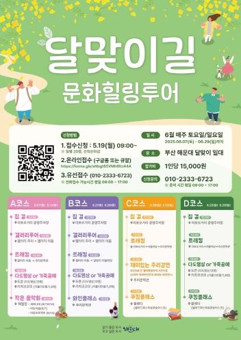 [경남도민뉴스=신석주 기자] 해운대구는 달맞이길 관광 활성화를 위해 6월 한 달간 ‘달맞이길 문화힐링투어’를 운영한다.