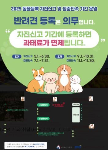 해당 기간 동안 미등록이나 변경사항 미신고에 대한 과태료를 일시적으로 면제해 소유자들의 자발적인 동물등록을 장려한다. 동물 등록 의무 대상은 2개월령 이상의 반려견이다.