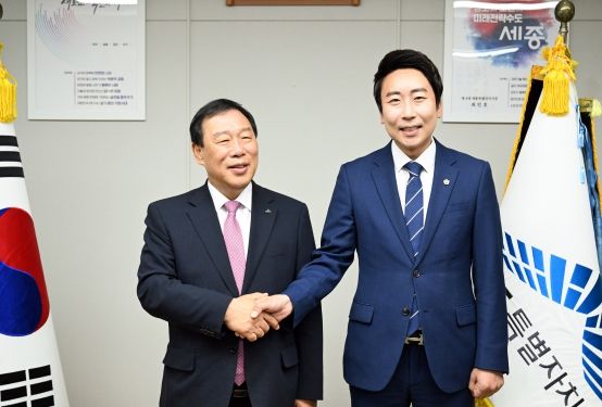 [경남도민뉴스=도문호 기자] 임채성 세종특별자치시의회 의장은 19일 최민호 세종시장을 만나 ‘행정수도 세종 완성’ 대선 공약의 실현 방안에 대해 논의했다.