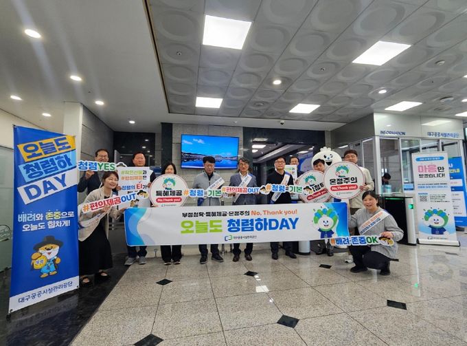 이번 캠페인은 대구시에서 추진 중인 ‘청렴하DAY’ 캠페인의 일환으로, 임원과 부서장이 직접 참여해 부패 취약분야 척결과 지역 내 청렴 문화 확산을 위한 실천의 장으로 마련됐다.