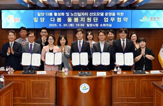 [경남도민뉴스=나희준 기자] 밀양시는 20일 시청 소회의실에서 밀양 다봄센터 활성화와 어르신들의 사회 참여 확대를 위한‘밀양 다봄 돌봄지원단’업무협약식을 개최했다.