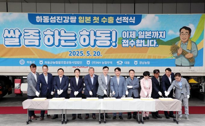 [경남도민뉴스=김태수 기자] 하동군은 지난 5월 20일, 지역 대표 브랜드 쌀 ‘하동섬진강쌀’의 일본 첫 수출을 기념하는 선적식을 개최하며 본격적인 쌀 수출 확대에 나섰다.