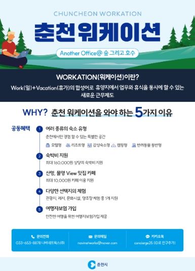 김시언 시 관광정책과장은 “숲과 호수의 도시 매력을 널리 알리고, 참가자들이 추후 관계 인구 또는 생활 인구로 전환될 수 있도록 유도하겠다”며 “지역내 워케이션 생태계 구축에 힘쓰겠다”고 밝혔다.