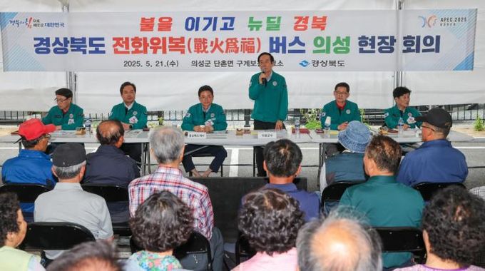 [경남도민뉴스=장강동 기자] 의성군은 5월 21일, 구계보건진료소에서 ‘경상북도 전화위복 버스’ 현장회의를 개최하고, 지난 3월에 발생한 산불로 피해를 입은 구계1·2리 마을의 복구와 재정비 방안을 논의했다.