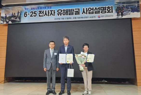 [경남도민뉴스=백상현 기자] 대구 달성군이 6·25 전사자 신원 확인과 유가족 찾기에 관련한 행정지원의 공로를 인정받아 22일에 열린 ‘6·25 전사자 유해 발굴 사업설명회’에서 우수 행정기관으로 선정되어 국방부장관 감사패를 수여받았다.