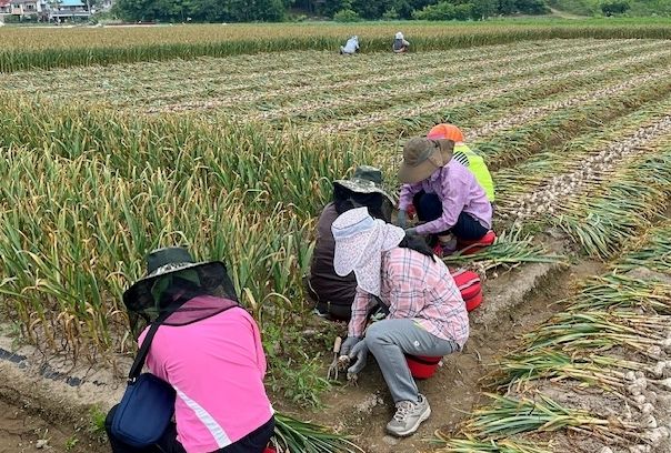 참여자들은 이른 아침부터 무더운 날씨 속에서도 마늘을 캐고 옮기는 등 농가의 적기 수확을 도왔다.