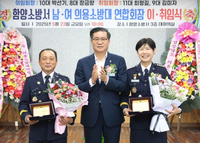 진병영 함양군수는 “어려운 여건 속에서도 지역사회 안전을 위해 헌신하신 박선기, 장금향 회장님께 깊이 감사드린다”라며, “앞으로도 최형길, 김미자 신임 회장님을 중심으로 의용소방대가 군민의 신뢰를 받는 조직으로 거듭나길 바라며, 재난 예방은 물론 안전한 함양을 만드는 데 군정과도 긴밀히 협력해 주시길 바란다”라고 당부했다.