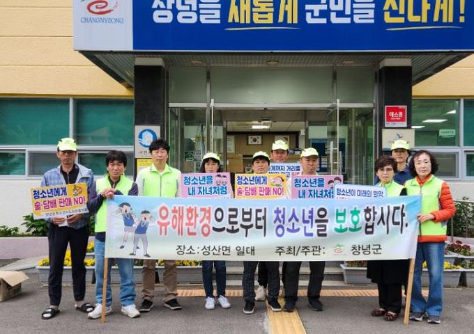 [경남도민뉴스=김병현 기자] 창녕군 성산면은 지난 24일 청소년지도위원 10여 명과 함께 개학기를 맞아 청소년들의 건전한 성장 환경 조성을 위한 유해환경 점검 및 보호 캠페인을 성산중학교 일원에서 실시했다고 밝혔다.
