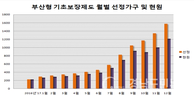 부산형 기초보장제도 월별 선정 가구 및 현원은 작년 1월 300가구에서 꾸준하게 증가해 올해 상반기에 2천 가구로 꾸준히 증가하고 있다. 지원 가구 증가에 따라 월별 지원 금액도 증가하는 추세이다.