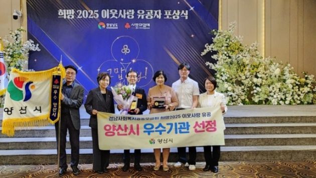 [경남도민뉴스=최미정 기자] 양산시는 지난 23일 호텔인터내셔널창원에서 열린 ‘희망2025 이웃사랑 유공자 포상식’에서 우수 지자체로 선정돼 경상남도사회복지공동모금회장상을 수상했다고 밝혔다. 양산시는 2022년, 2023년도에도 우수시로 선정돼 수상한 바 있다.